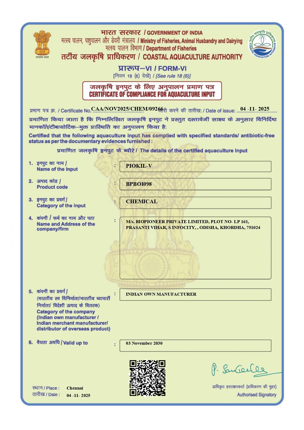 - Startup India Award: Biopioneer was honored as a TOP 4 startup in the category of excellence, from local to global, in 2024.